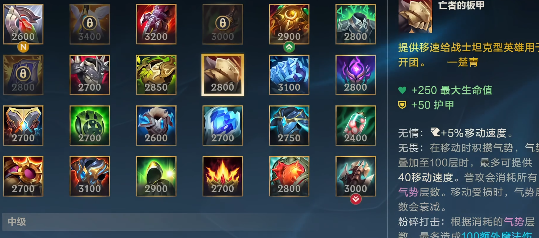如果你这把需要你顶在前面,为队友扛下大量伤害,那走坦克流就是不错的选择。坦克流的思路就是在出了黑切之后,开始狂堆护甲和魔抗。亡者的板甲是个好东西,除了增加生命值和护甲,那个累积移动速度的效果能稍微缓解盖伦腿短的问题,追上人才能转起圈圈嘛。兰顿之兆面对依赖攻速的射手英雄时效果显著,主动的减速场也能帮助留人。如果对面魔法伤害高,振奋盔甲就是你的好朋友,它能提升你的魔法抗性,并且加强你的所有治疗和回复效果,完美搭配盖伦的被动,让你从草丛伦升级成移动泉水。
