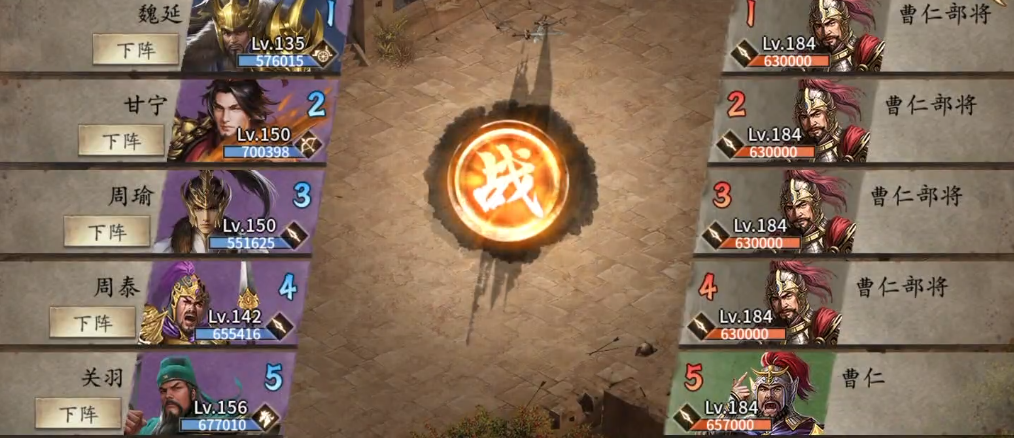 对于资源有限的平民玩家,过关的思路会更侧重于武将搭配和运气成分。可以采用貂蝉携带副将孙权,甘宁携带副将司马懿,曹操使用残三车的配置。这套打法中黄月英和孟获是主要的伤害来源,甘宁负责战法输出,而貂蝉和曹操则扮演辅助角色。这个过程对时机的把握和运气的要求都比较高,比如需要司马懿成功反制到曹仁的战法,或者甘宁在收尾时能打出一次关键的斩杀。