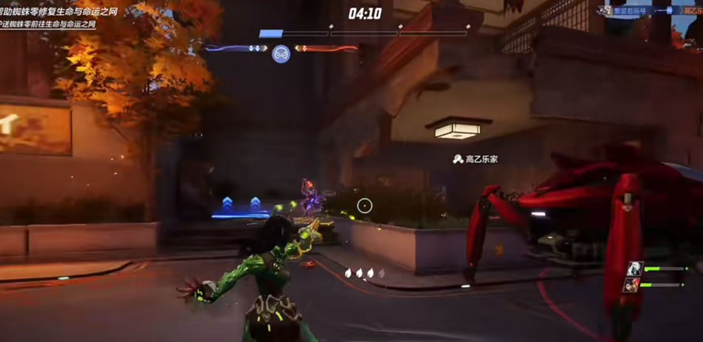 在空中的时候按下空格键,自己可以往其他位置位移一小段,并且恢复血量。这是曼蒂丝的被动,可以在自己转点或者是没血的时候使用。大招释放以后会生成一颗大树,升起的时候可以恢复在范围内队友的大量生命值。当血量回满之后,还能提更额外的临时生命。不仅如此大招还可以当作掩体使用,可以挡住对面的一些关键伤害。