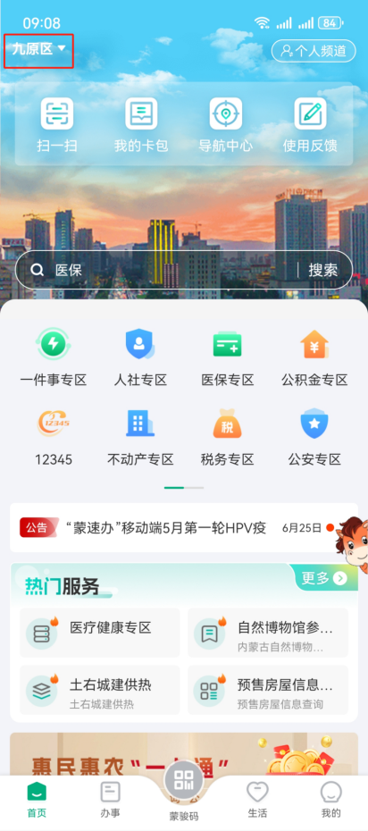 3.在首页点击“不动产专区”,完成人脸核验授权。