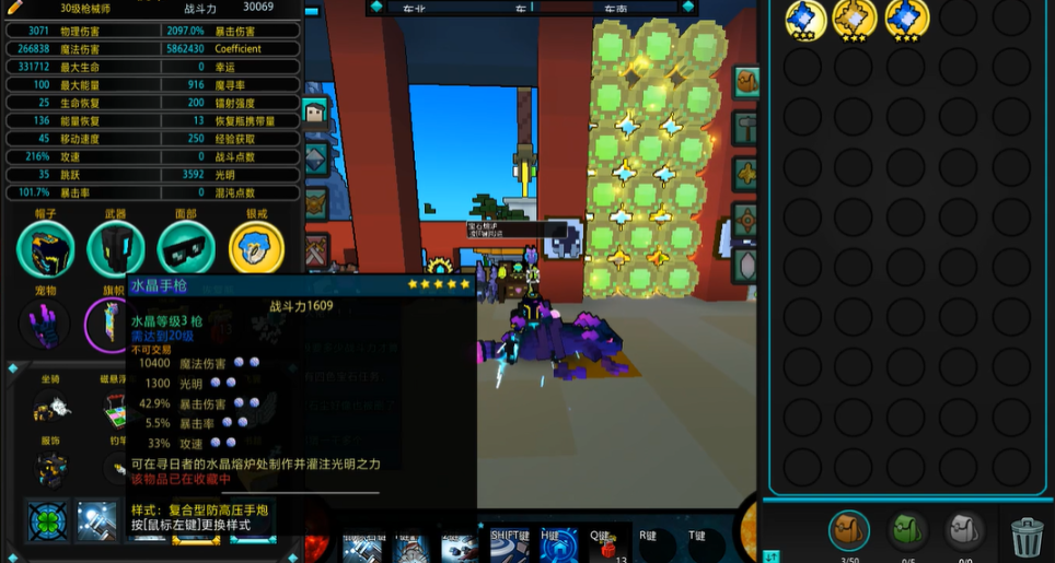 要玩好枪械师,属性的搭配是重中之重,你需要围绕暴击伤害、暴击几率、魔法伤害、跳跃和攻速来构建角色。前期开荒的时候,建议优先堆叠魔法伤害和攻击速度,这样基础输出会稳定许多;等到后期装备和宝石逐渐成型,就可以把重心转移到暴击率和暴击伤害上,建议暴击率最好能达到70%这样输出会更爆炸。装备方面每件装备最好都能带上攻速和跳跃属性,这两个对枪械师来说太重要了,攻速能让你打得更快,跳跃则直接关系到空中输出的稳定性。宝石的话武器有六个插槽,优先镶嵌暴击率、暴击伤害和魔法伤害类的宝石,比如红宝石加攻击力,黑宝石提供全属性,这些都能让你的战斗力提升一个档次。