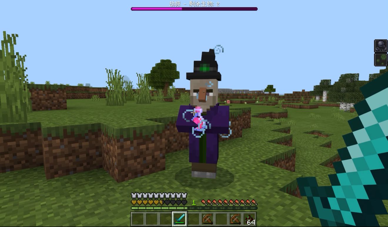 女巫投掷药水有0.5秒延迟,虽然可以躲避,但盾牌仍是最稳妥的选择。没有盾牌时不要轻易尝试近战,否则容易被剧毒加迟缓的组合压制得无法移动。袭击事件中的女巫会和掠夺者配合行动,建议用远程武器逐个击破。女巫死亡后会掉落糖、红石粉、火药以及随机药水,这些都是中期探索中实用的资源。