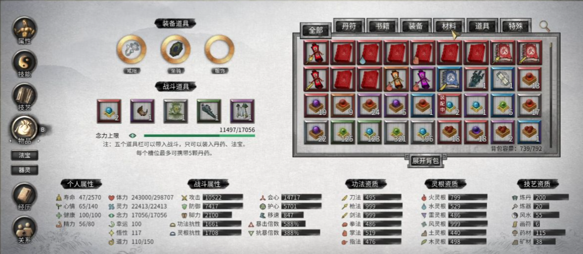 如果你已经想好了自己要玩什么套路,那选择可以更有针对性。比如你打定主意玩剑修,那么就可以选择专门增加剑法资质和剑法熟练度修炼速度的气运,这能让你在剑术这条路上成长得飞快。如果你想玩火修或者雷修这类依赖元素伤害的,那么可以选择强化特定灵根资质的气运,有的气运能全面增加所有灵根,有的则专门强化某几类元素灵根,这样能让你早期的元素技能就颇具威力。这就是所谓的特长型开局,放弃一点泛用性,换取在特定道路上的早期优势。