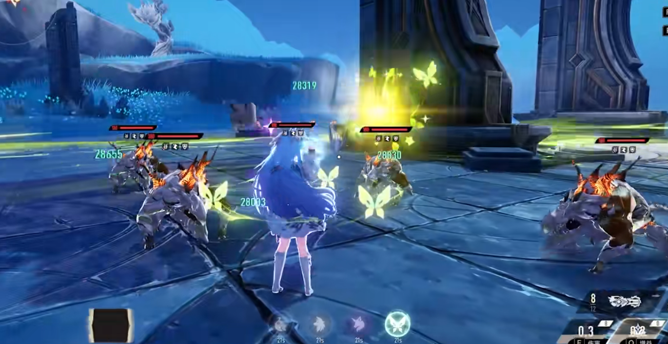 但是这个伤害非常低,基本上对付不了同等级的敌人。在咱们开启大招之后,所有追伤状态以及领域属性都会显示在屏幕中下方,后续按大招切换属性就不会打断动作,而且会刷新所有追伤的持续时间。咱们的小技能分为常态跟开大后的强化,开大状态的强化技能可以重置大招的领域位置,以及重置追伤buff的持续时间。点出进阶被动之后,我们也需要强化技能来给队友提供增伤。虽然强化技能提升了技能倍率与伤害范围,但是技能的前摇时间太久,会被敌人打断攻击,而且消耗高还没伤害,一般只会用来给队友提供增伤。