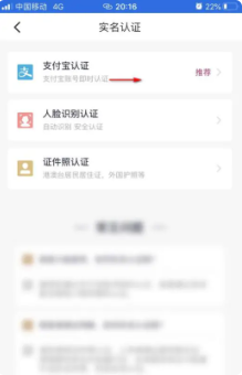选择认证方式:在认证页面点击选项栏(需确保手机已登录支付宝账号)。