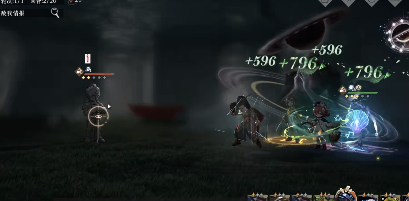 头像下面有五个点,当我们用一些特定的招式去攻击敌人的时候,他这个点就会增长。中间这个圆心的部分,就是技能描述里面的飞羽。当卡珊德拉拥有圆点之后,打一个特定的攻击,就可以把这个圆点的数量变成圆圈的数量。进入战场的时候,我们把卡珊德拉切出来,这样直接就有两个这个圆点了,卡珊德拉的普攻有五段,把前四段打完,卡珊德拉就会把伞打开,这个时候再去点普攻,就往前面突进一下,这个就是淑女普攻。打这个淑女普攻,就可以长一个圆点。