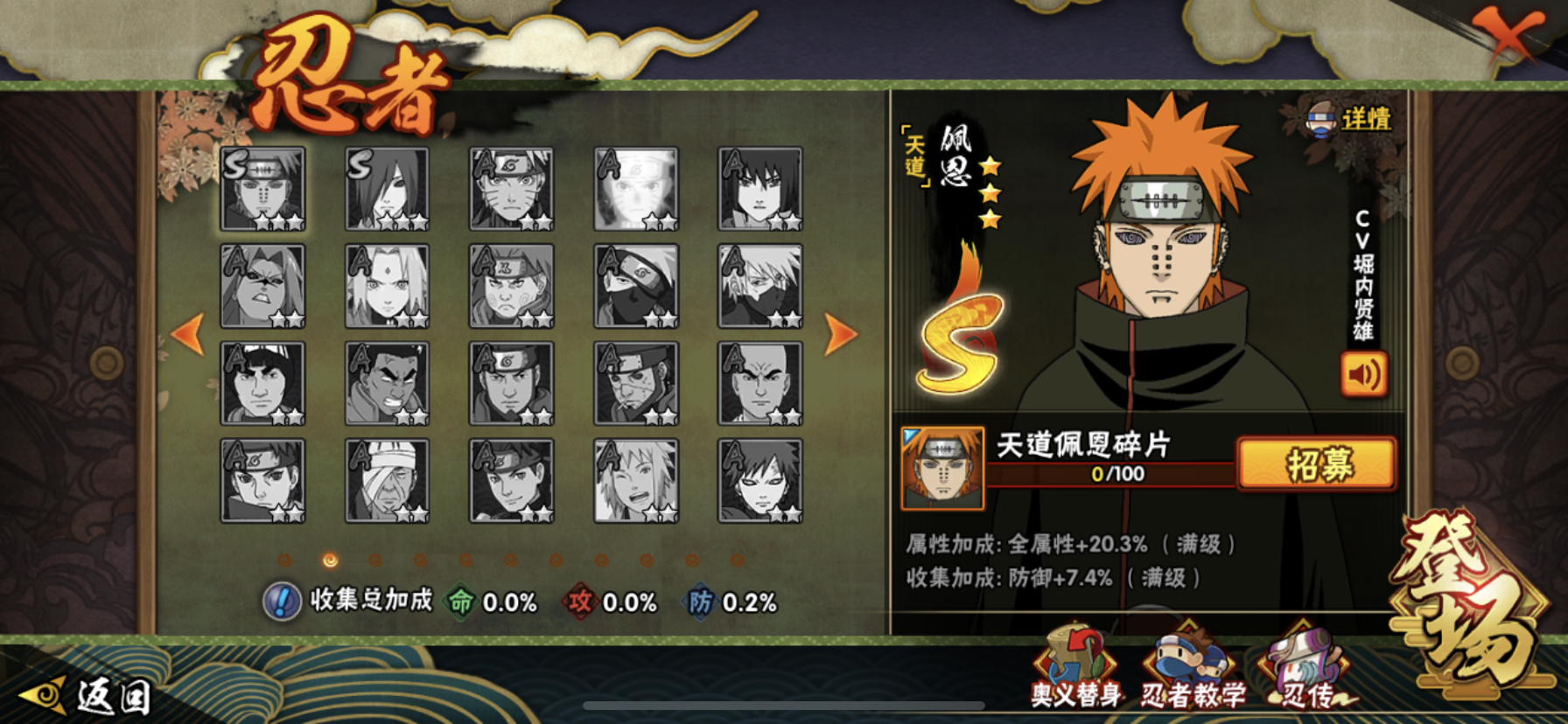 秘卷选择上查克拉秘卷能实现技能与奥义的无缝衔接。雷电击可增强控制效果,弥补万象天引空技能时的短板。气旋秘卷则能扩大范围控制,配合万象天引更容易命中移动中的敌人。霸体适合压制打法,开启后可主动走到对方脸上普攻。通灵兽方面贝壳能提供先手控制,逼迫敌人替身从而为万象天引创造起手机会。熊猫可提供霸体保护,避免天道佩恩在释放技能时被敌人起手打断。