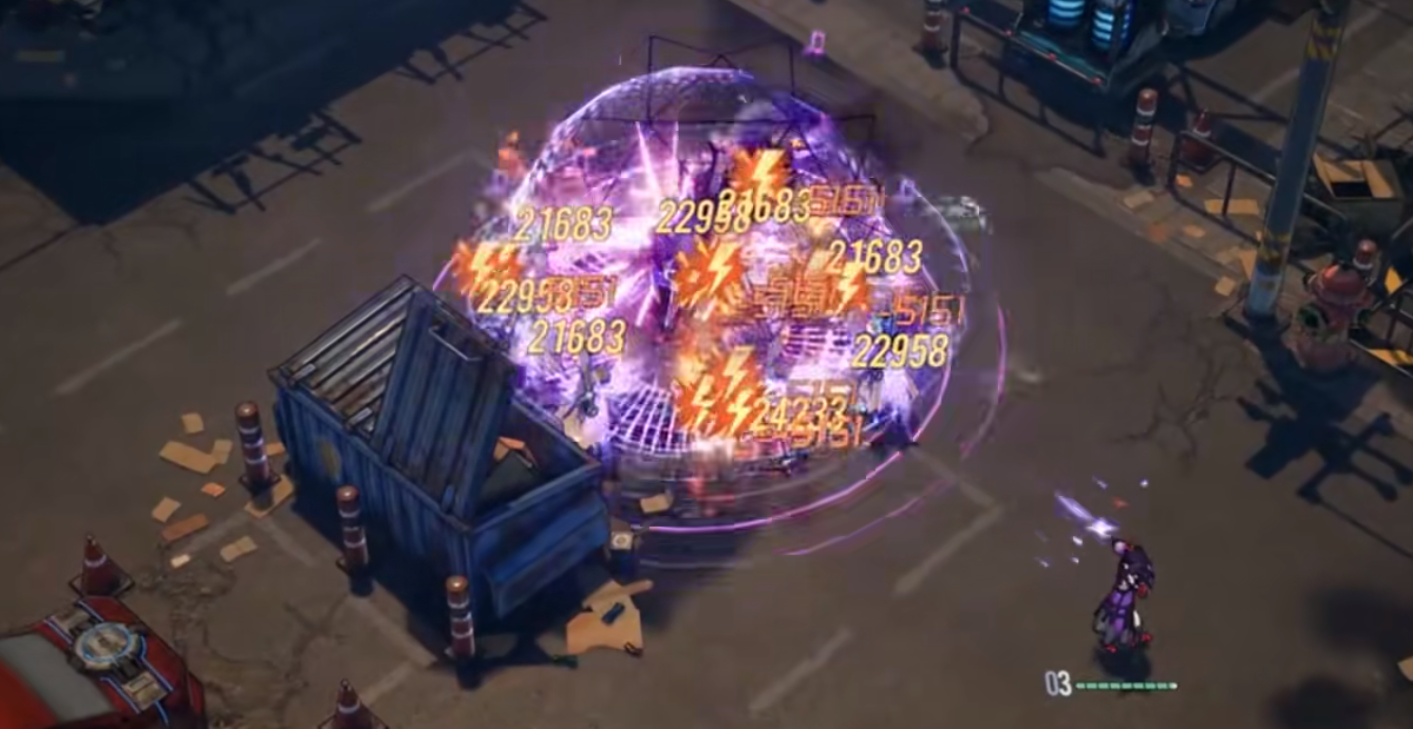 等第五段的攻击打完,再去长按特殊键按键的话,就会放这个强化特殊技了。所以如果对这个节奏把控的不是很好的话,那么你就可以用第二种方式来释放落雨,这样是最简单的,也不容易错。我们使用强化特殊技会生成六个电弧,然后再去释放落雨,这个电弧就会飞过去打敌。打中了敌人身上就会有一个十字的标记,当敌人身上有了这个标记以后,去叠闪避加普攻,就会把连着射的这个招式进行加强。普攻就会变成近战突进,过去再划拉一下敌人。这个飞旋斩是有多段的,而且当我们把这个闪避等级升到12级,每一段都是300多的倍率,三段飞旋斩加起来就是1000多的倍率。