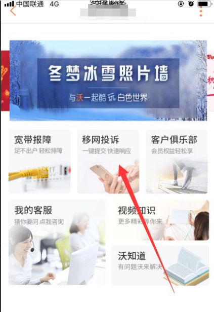 进后如下图所示,同时找到页面中的移网投诉入口。点击进入