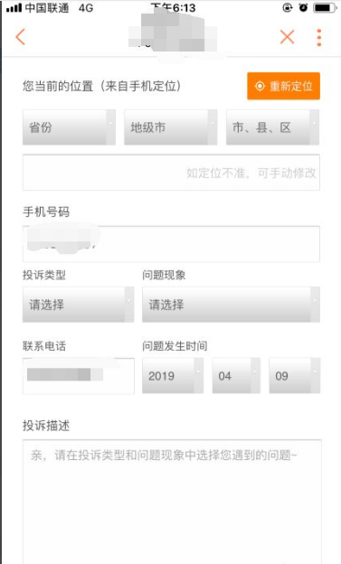 完善你需要投诉的内容以及问题描述,发生时间等等信息。完善好后即可点击页面下方的提交。