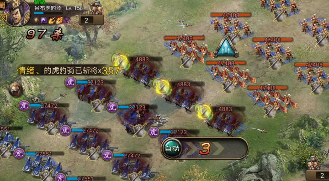 它释放出去后,会自动锁定你当前城池里的敌方部队,然后发起无限次的单挑,直到把对方打趴下为止,这个过程是完全自动的快速战斗,非常省心。 而且它的第一排攻击自带冲锋效果,这第一下打出去威力特别足,配合战法有时候能一下解决好几排敌人,清理杂兵的速度飞快。 在平原这类开阔地图上,开启后的虎豹骑表现非常突出,基本处于一种近乎无敌的状态,刷经验或者快速攻打一些强力目标像吕布什么的,效率会高很多。 不过也得注意,它虽然攻击猛,但防御能力相对是短板,攻击范围也比较小,必须贴近了才能打,所以不能让它孤零零地冲进敌人堆里被集火。