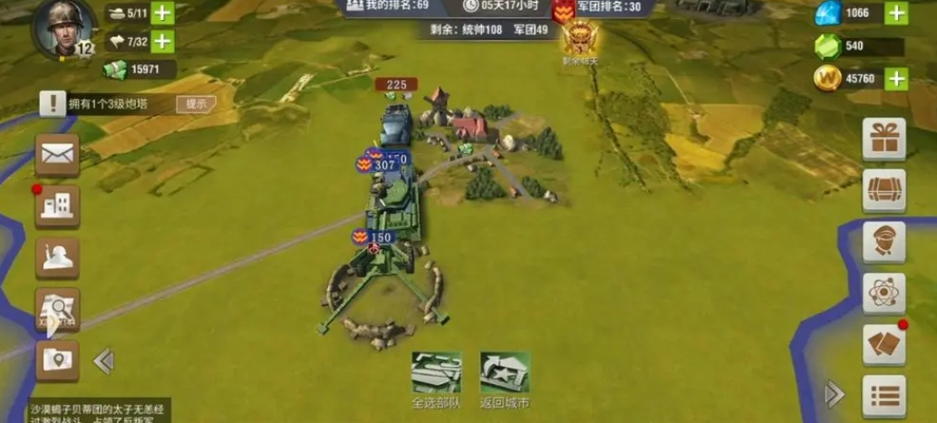 兵力配置上炮灰部队要各准备1单位的侦查机、歼击机、轰炸机、骑兵、轻坦、重坦、装甲,用来吸引敌方火力保护主力。主力部队则需要11000突击兵和4000火箭兵,突击兵近战秒杀敌方轰炸机和步兵,火箭兵远程摧毁城防和坦克。低级寇城可适当减少主力数量,但炮灰配置不能省略。第一回合除歼击机和轰炸机外,所有部队包括炮灰、主力和运输都要前进,拉近与敌方的距离让炮灰前置吸引火力。第二回合全体待机,等待敌方单位进入主力射程。第三回合敌方轰炸机会优先攻击炮灰里的骑兵,此时我方突击兵进入射程可直接秒杀敌方轰炸机削弱空中输出。后续回合指挥火箭兵和突击兵依次消灭敌方剩余的坦克、步兵、城防炮等单位直到胜利。