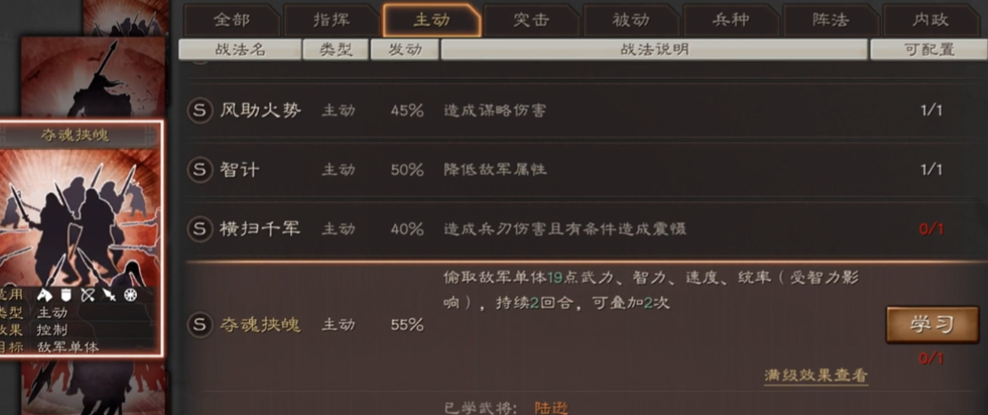 贾诩是一位以控制为核心的辅助型武将,具备不俗的谋略输出能力。他自带战法“神机莫测”,不仅能对敌军单体施加2回合混乱,还会对自身外的全体目标依次判定,未混乱的目标有25%概率被附加混乱。当友军处于混乱时,贾诩能解除其所有负面状态,作为主将时还会额外提升友军伤害。且贾诩自身免疫混乱,不用担心误伤。