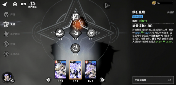 在“雷神+美队+白皇后”的经典组合中,白皇后的终极技能可增强雷神的特殊伤害类型,并削弱敌方防御属性,从而进一步放大雷神各项天赋的实际收益。与此同时美队提供的攻防增益效果也能提升雷神的持续作战能力,使其能够在前线稳定输出,充分发挥天赋叠加的优势。