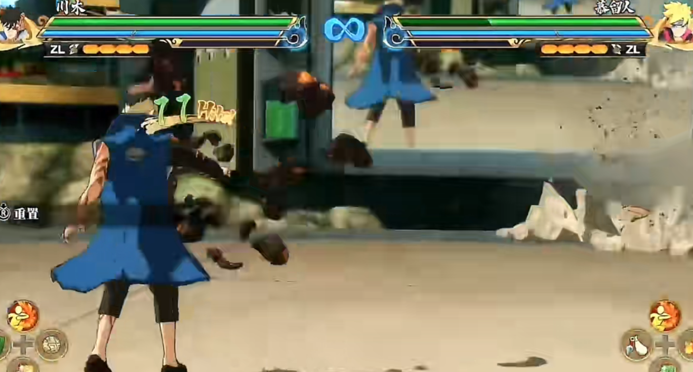 上段攻击第五段用手刀将敌方砍退,第六A放大黑棒使敌方浮空。川木的空中攻击最后一段很强,打满有一个大范围的持续性伤害,最后一段使敌方跪地可以连招。如果前后摇太大用3A打行接也是可以的,打满需要稍微等一下,如果立刻接冲刺可能会打空。因为连续受到伤害时会触发一个很小的无敌帧,可能会导致技能打空。反面时最后一段可能会丢出场外,这一点也需要注意一下。投技命中敌人会使对面跪地,可以接其他的攻击。施法速度很快,可以打断很多的忍术和奥义,算是目前来看非常强势的一个投技了。