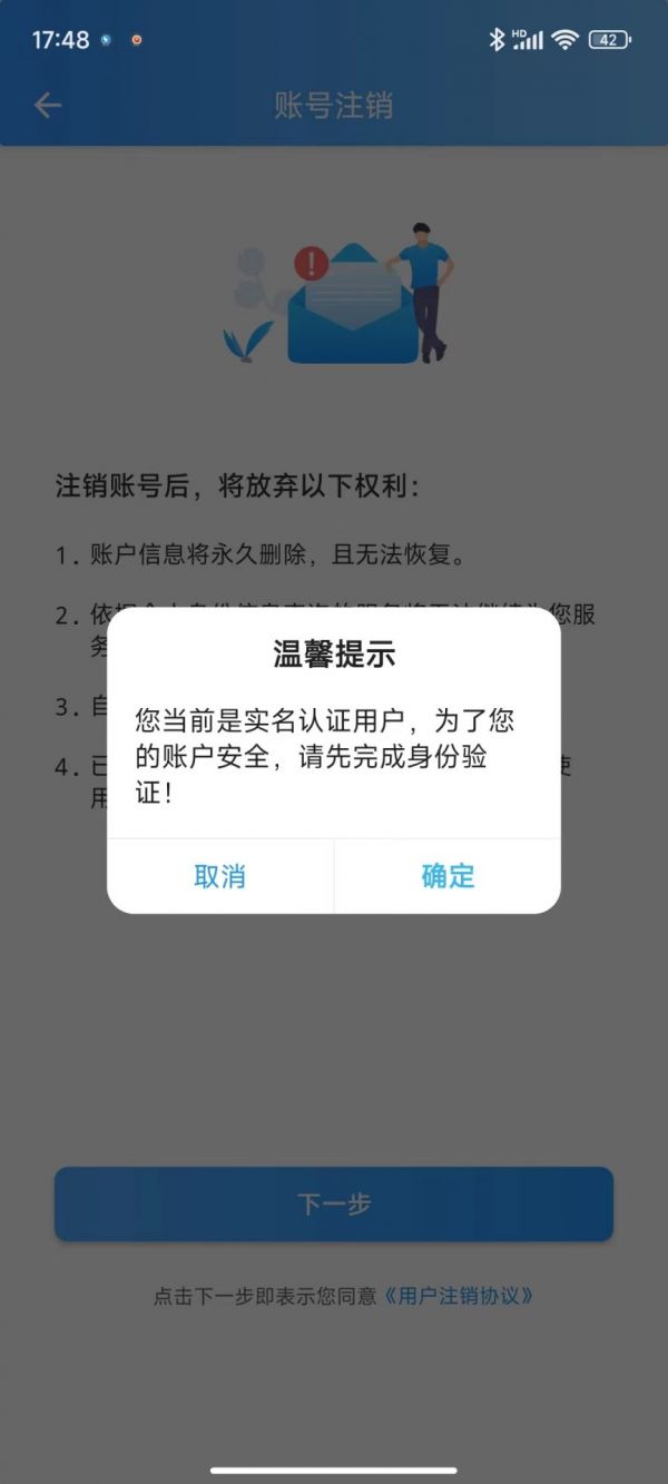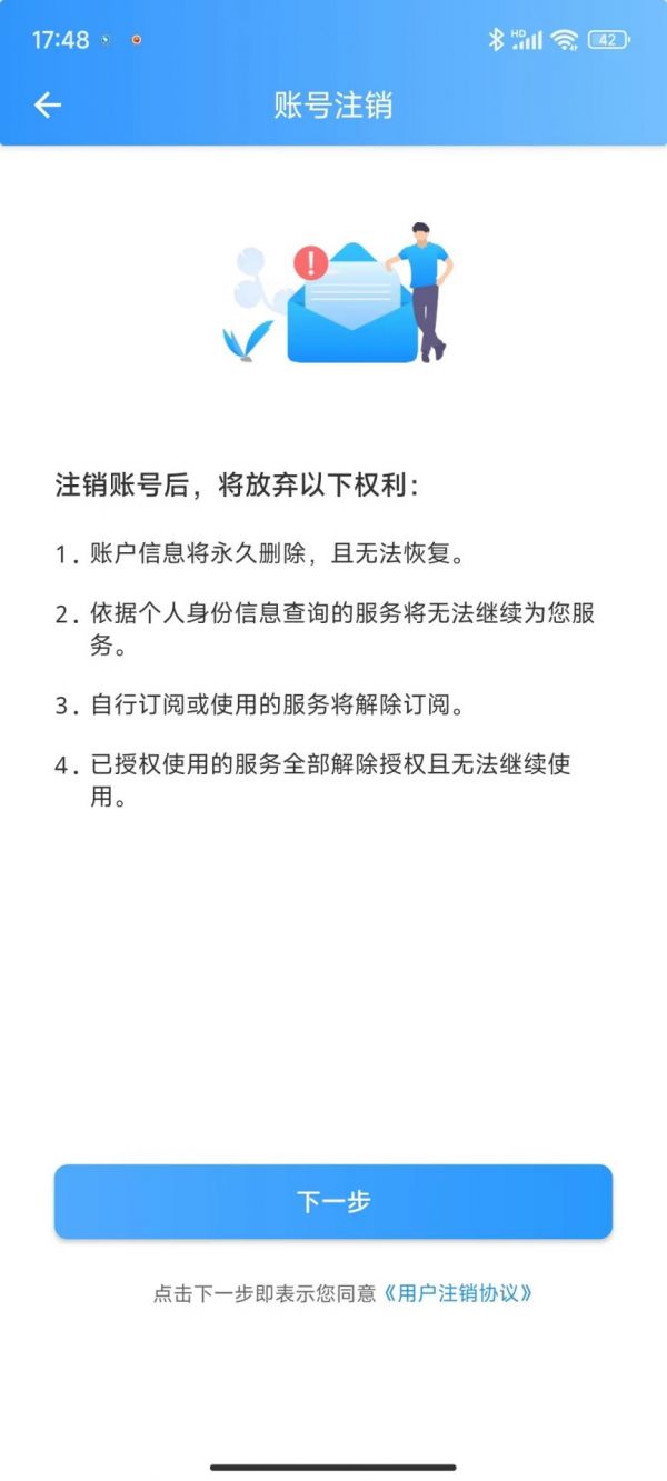 3.阅读注销内容,点击下一步