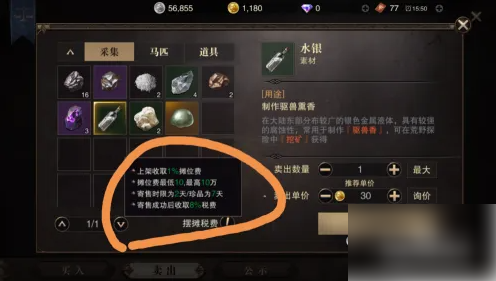 进入卖出页面之后,我们看到我的摊位那里,我们可以放8件东西进行上架拍卖,随便选择一个进行上架物品