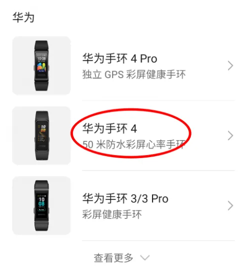 进入后根据自己华为手环的型号,选择匹配的型号进入。