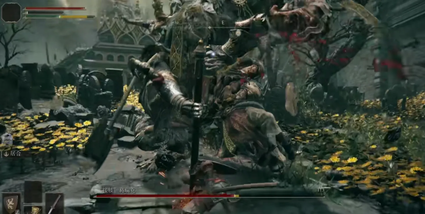 在第三段攻击结束以后,咱们就站在它的面前给BOSS一个战技居合,之后截肢葛瑞克就会在原地产生龙卷,同时左手开始喷出火焰。截肢葛瑞克会召唤出一个风暴,这时咱们就需要快速的举起盾牌,与它保持完全安全的距离。在这之后他就会在原地掀起一个范围比较大的火风暴,然后快速的翻滚朝着咱们进行攻击。但他进行下落的时候往左侧快速翻滚,再接上一个战技居合。看见BOSS起跳,咱们就向前方连续翻滚,等到它落地以后,咱们就站在它的背后给它一个居合斩。