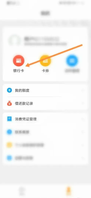 第二步进入我的页面,点击银行卡