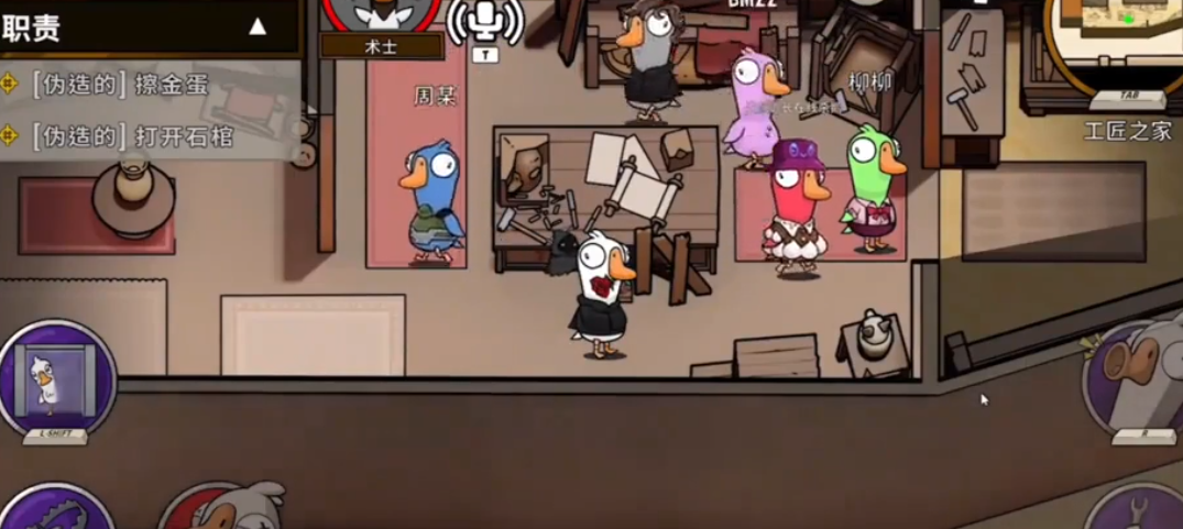 术士的任务主要分为解锁自身能力的专属狼人任务和觉醒后使用技能时在破坏菜单中选定目标房间两部分,其核心玩法围绕着完成特定任务来解锁强大的群体伤害能力。术士作为鸭子阵营的一员,初始状态与普通鸭子无异,仅能进行常规的刀人操作,此时它的关键任务并非直接造成混乱,而是必须优先去完成地图上专属的狼人任务链,这个任务链通常是地图特定的互动或击杀目标,这是术士解锁其灭世力量的唯一钥匙,只有成功完成这些专属任务,术士身份才会正式激活,从而蜕变成为能够左右战局的角色。