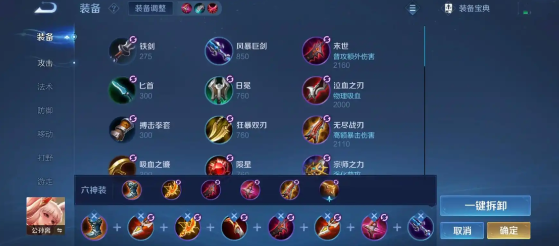 公孙离的机动性很高,输出逻辑围绕普攻印记展开。在当前版本中,以攻速和暴击为核心的出装体系仍是她的最优选择。末世作为必出的核心装备,能为公孙离提供60%的攻速加成和10%的物理吸血。在携带狂暴的情况下,出完末世就来到的前期的强势期。鞋子的选择很灵活,控制少时急速战靴,控制型多就抵抗之靴。控制均衡且生存压力大,就可以选择布甲鞋。