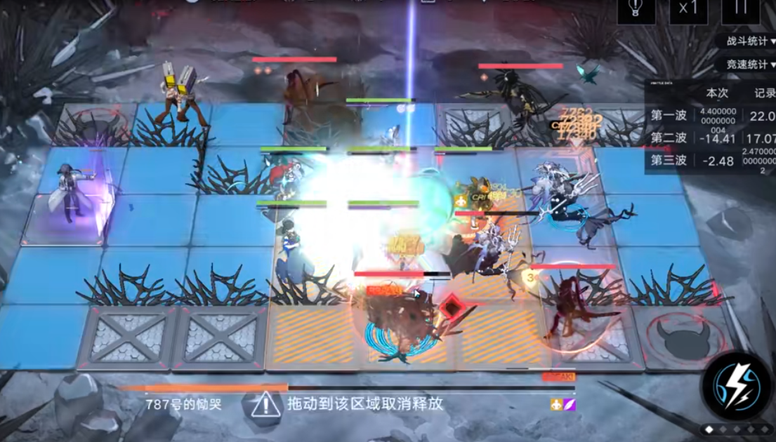 被动二是每次触发丝线,咱们就能叠一层石之自由,大招每命中一个敌人就可以叠加一层。每次的倍率能够达到百分之五百七十六,而且还是一个单格的范围伤害,也就意味着整体的数值上限非常高。要是打满伤害也是比较费时间的,一个大招打完需要3秒的时间,专烙还要1.5秒,每叠一次被动二又要1.25秒,在暗域里启动慢是个比较严重的问题。但是可以靠走A来弥补,看到打出五段伤就挪位置,这样就可以取消后摇,让咱们更快触发多次被动二。