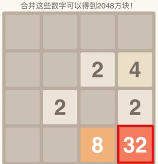 然后在上面肯定得到了2或4,按[←]放到左边,然后按下,麻烦点的例如得到4-2-8-32。