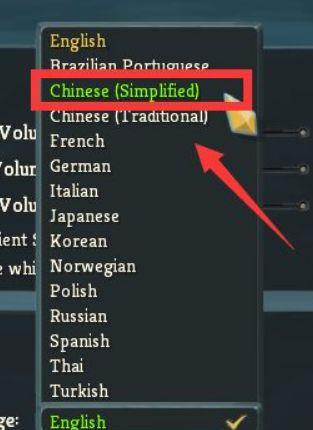 4.目前看到使用的语言是英语,那么想必还有其他语言可以选,点击一下,就看到好多种类的语言,选择chinese,这儿分为两种,上面一种是简体中文,下面一直是繁体中文,选择简体