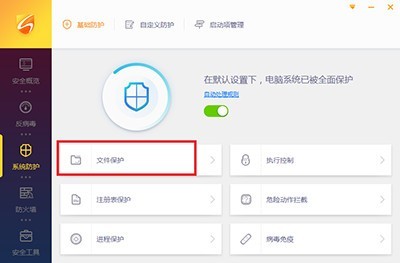3、在系统防护菜单中,我们点击文件保护;