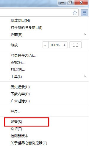1、首先我们打开世界之窗浏览器点击菜单==“设置”