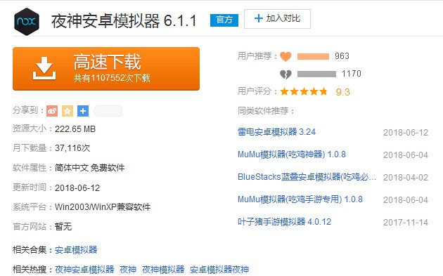 1、在中关村在线下载频道搜索夜神安卓模拟器