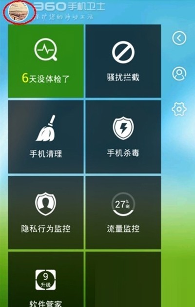 1、保持当前联网状态,打开360手机卫士安卓版,点击主界面左上角头像处