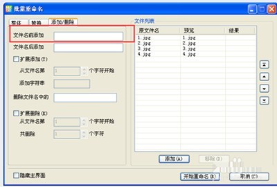 4、我们切换到添加或者删除,在文件名前面加上我们的准备用文字。