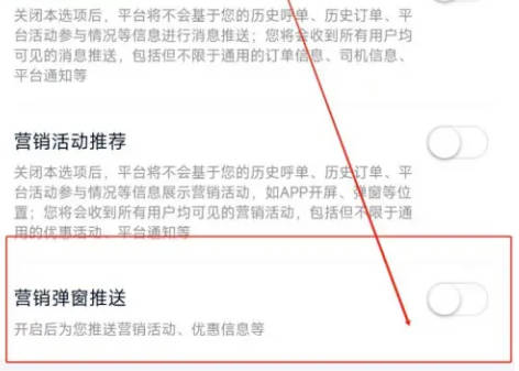 5.在个性化选项里找到“营销弹窗推送”,在它的后面显示有一个开关按钮,在上面点击圆形滑块把它设置为关闭即可。