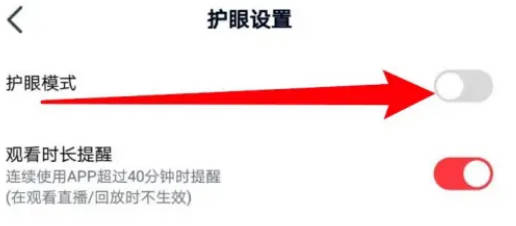 3.接下来在护眼设置页面里“护眼模式”的后面会看到有一个开关按钮,在它的上面点击圆形的滑块把按钮设置为灰白色状态,护眼模式就可以成功关闭掉了。