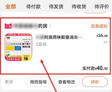 2.来到订单页面后,在想要查看的药品订单处点击进入。