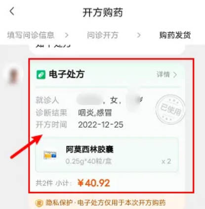 6.最后,在进入的页面里就可以查看到处方单的详情内容。