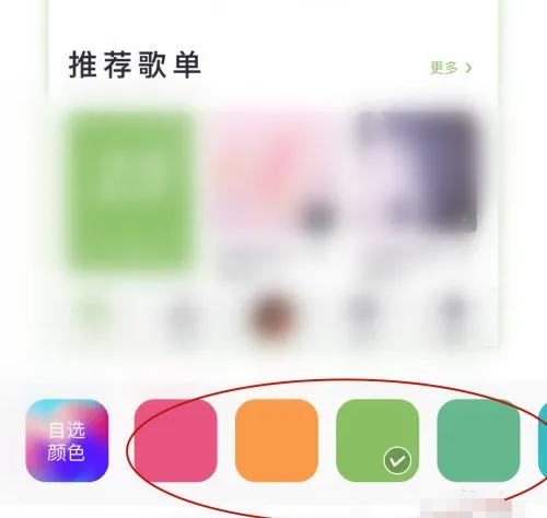4.最后,在自定义皮肤界面的最下方会看到有一排颜色列表,根据自己的喜好在选项上点击选定。最后,点击右上角的“完成”保存设置即可。