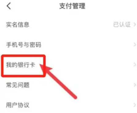 2、进入支付管理页面,点击我的银闲耻行卡。在我的银行卡页争付面,点击已绑召斤绵定的银行卡。