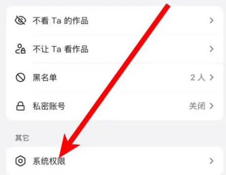 3.接下来在隐私设置页面的底部找到“系统权限”,并在上面点击打开。