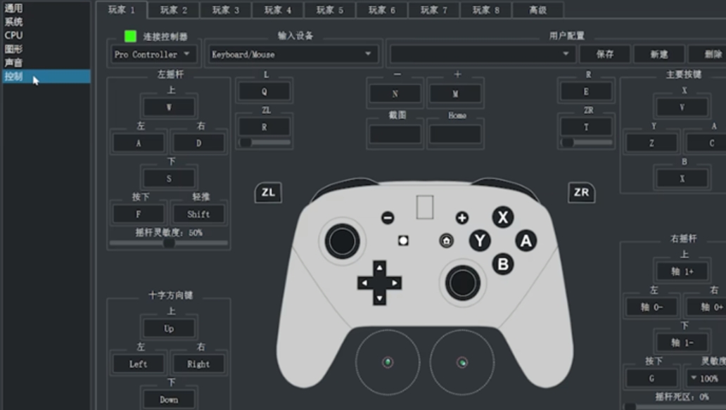 7、在用户配置处进行手柄设备配置的保存,即可重复进行使用。