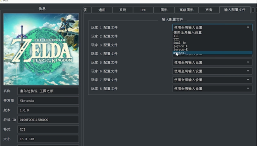8、游戏属性页面中可以设置不同的配置文件,有的游戏可以设置Xbox配置,体感游戏选择Joycon配置。