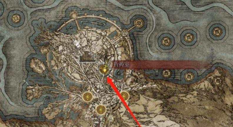 10、从艾布雷菲儿城墙内部出来顺着图2路线打完池子里的腐败黄金树根,腐败黄金树根近战很难打,可以先进蓝色箭头开赐福;