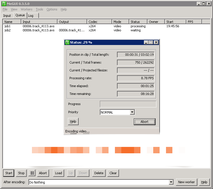 开始压片:队列中有两个任务,job1 为 1pass,job2 为 2pass,这两个过程对电脑性能要求较高,耗时取决于机器性能。点击下方的 Start 按钮即可开始压片,之后就是等待压片完成的过程。