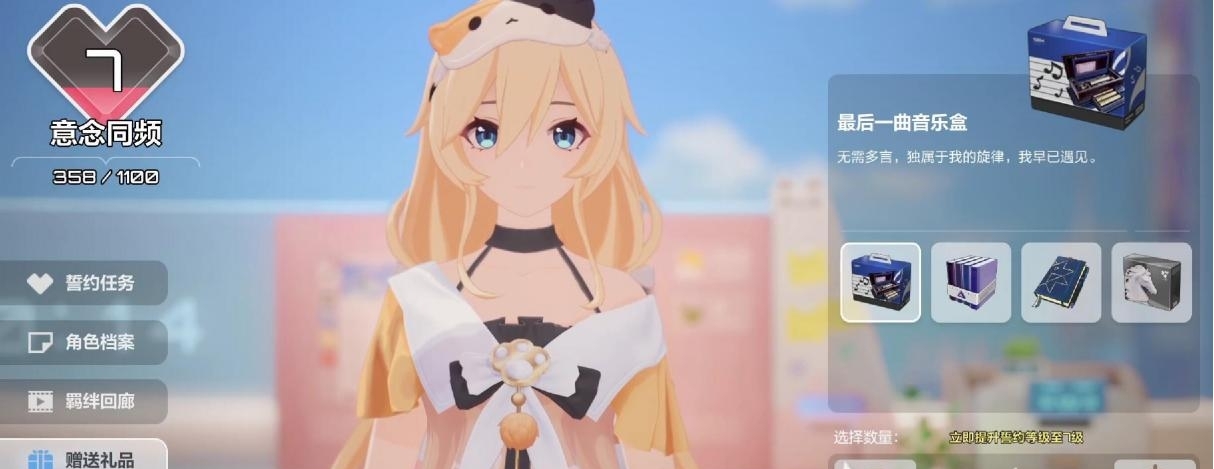 米雪儿是一个很喜欢音乐的角色,音乐盒就是她的最爱,这里可以随时放出一些动听的音乐。在赠送音乐盒以后,米雪儿会非常惊讶,这样就有机会触发她的感谢动画了。