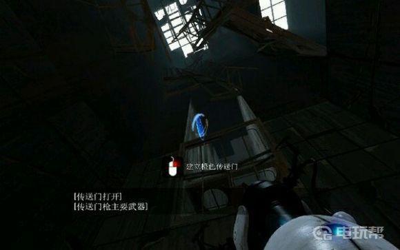 8.利用传送门可以来通过前方的障碍。在GlaDOS的帮助下,穿过废墟,进入电梯。第一章结束。
