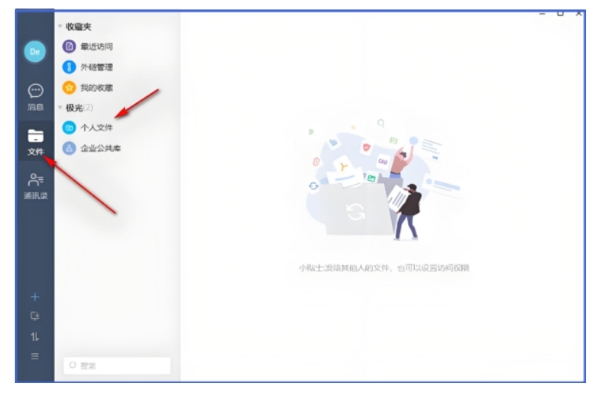 2、登录账号后,点击左侧列表中的“文件”,随后在右侧极光选择“个人文件”或“企业公共库”。