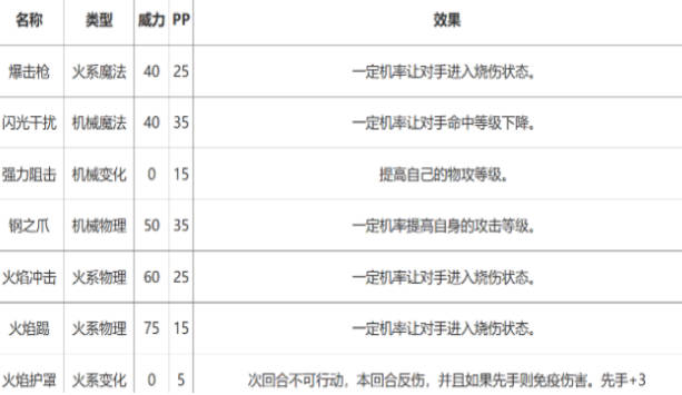 这个宠物的技能搭配推荐有火焰护罩+闪光干扰+钢之尾。火焰护罩是一个十分强大的防御性技能,在释放之后会让自己进入无法行动的状态,但是敌方如果对我方进行攻击的话,会返还敌方的攻击。闪光干扰则可以对敌方进行攻击,并且迷惑敌方的视角,让敌方无法对我方进行精确打击。钢之尾可以在对敌方造成伤害的同时强化我们的防御力,让我们的战斗能力变得更强。