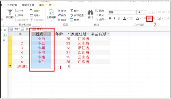 6、对数据表中的其他字段重复进行居中设置,确保统一格式,这样就可以成功设置好字体了。